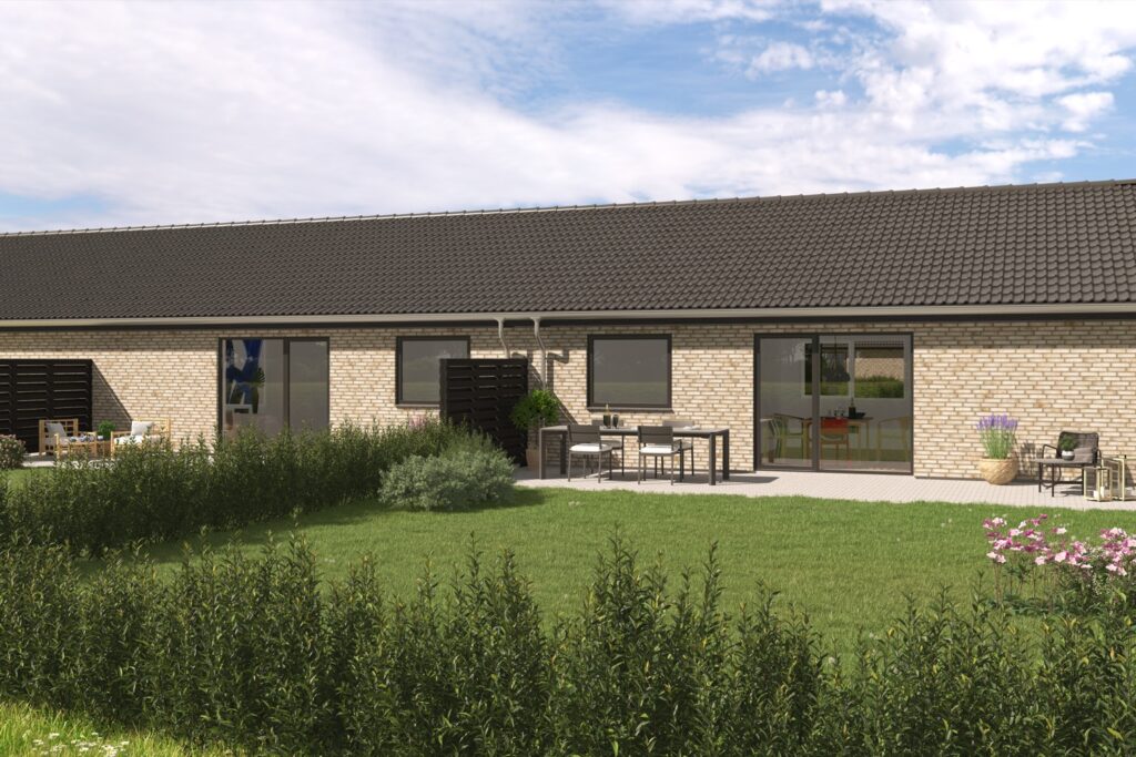 Til hvert hus hører både for- og baghave og indvendigt er Køkken-alrum og stue i direkte forbindelse med terrasse.