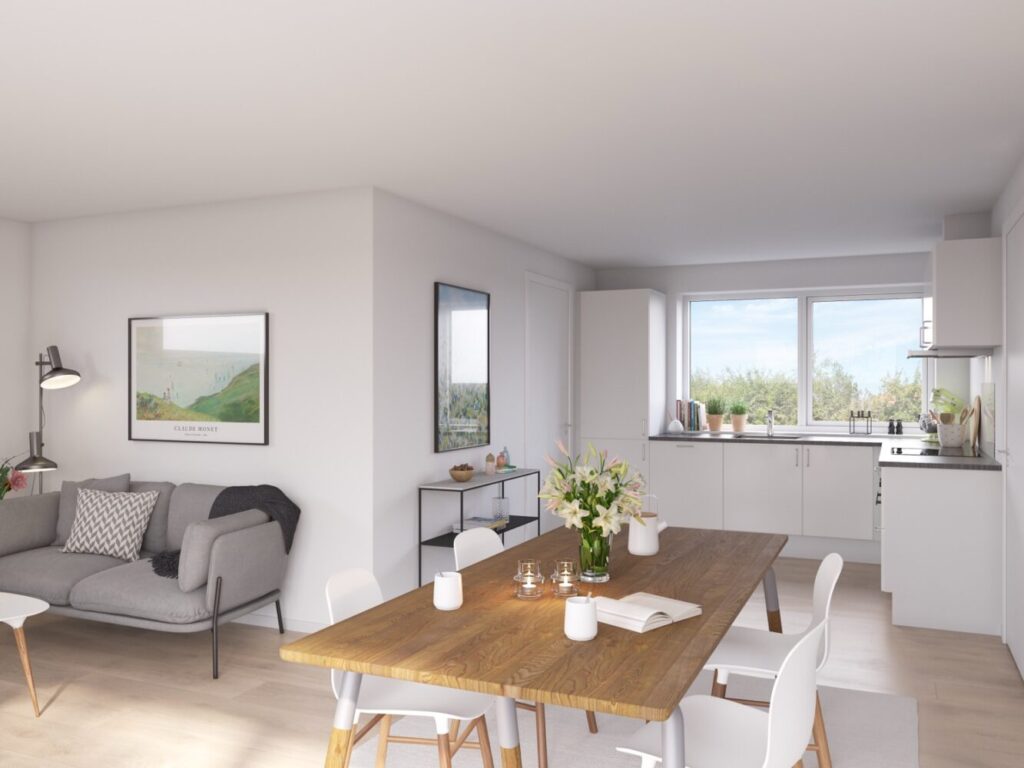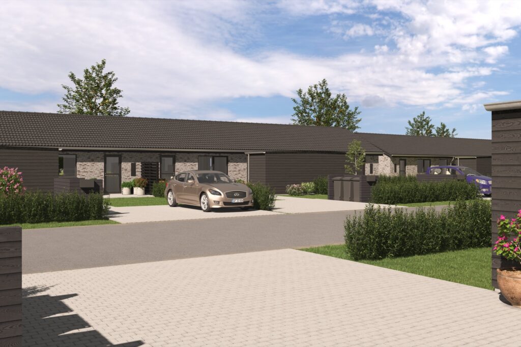 Ønsker du at bo I smukke omgivelser, ud til det åbne land med mark og skov, i den hyggelige landsby Tørring, kun 20 min fra Vejle centrum, er det nu muligt at bo til leje i 84 nyopførte rækkehuse.
